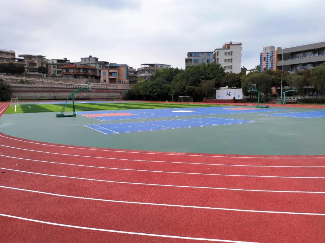 福州連江縣浦口中心小學塑膠跑道硅PU籃球場完工